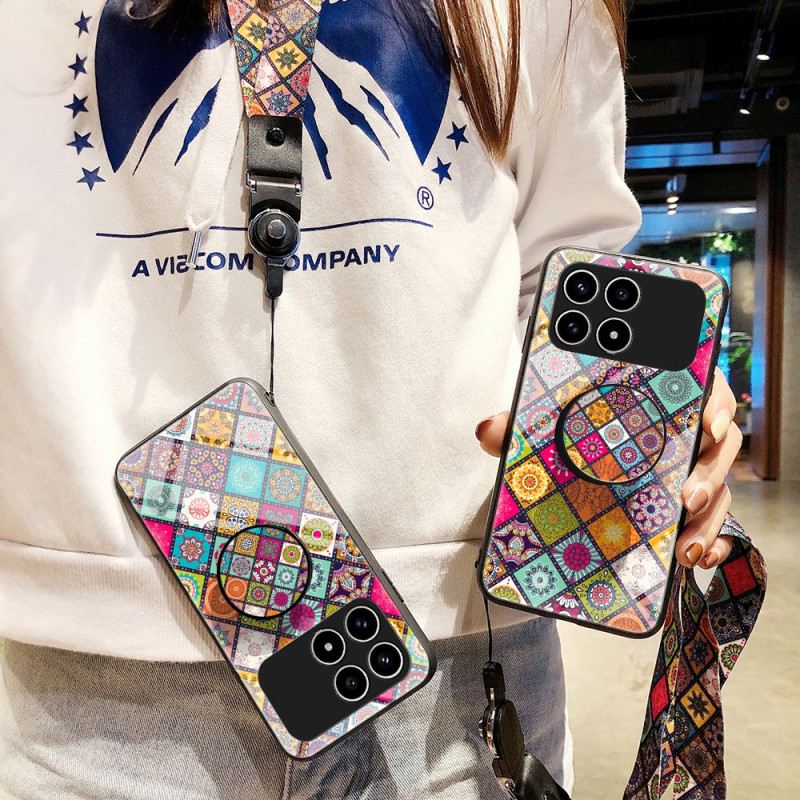 Coque Poco F8 Pro Support et Lanière Patchwork