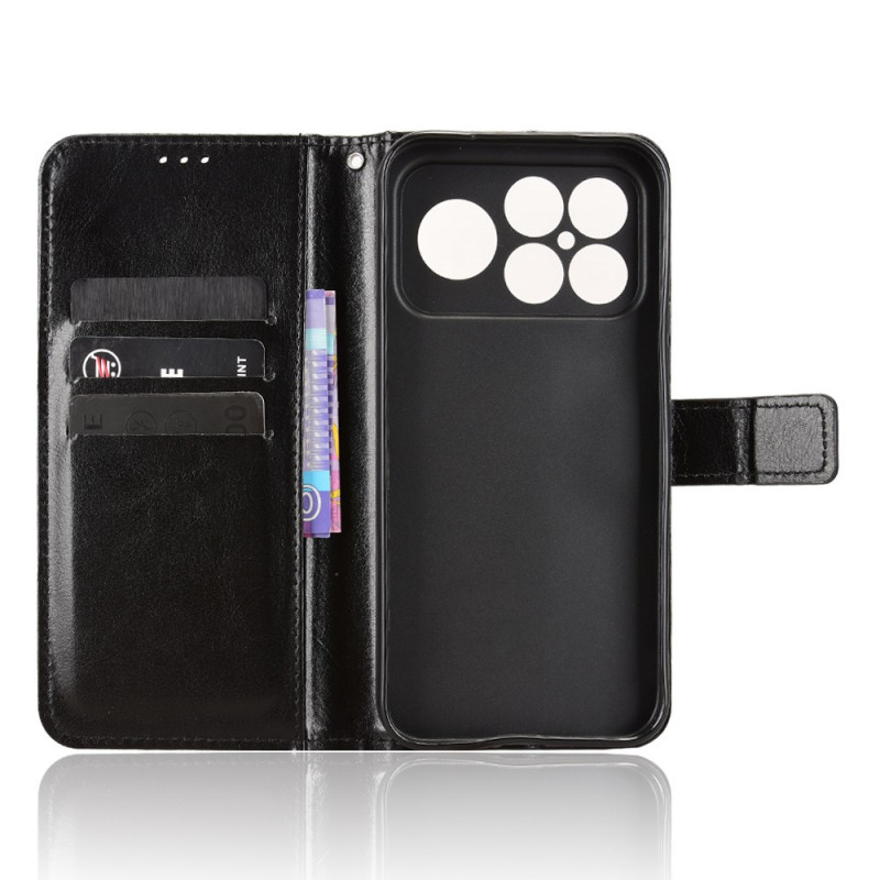 Étui portefeuille élégant en cuir PU texture cheval fou pour votre Poco F8 Ultra. Comprend 3 emplacements pour cartes, 1 compartiment à billets, fonction support mains libres et dragonne pratique. Protection intégrale contre les chocs quotidiens.