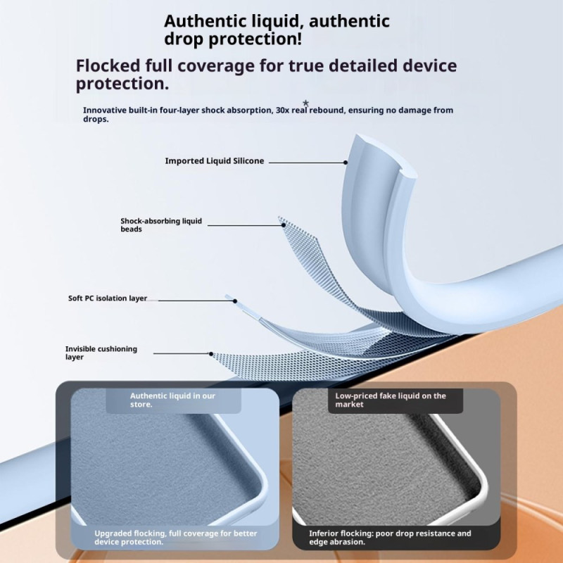 - Matériau premium en silicone liquide doux au toucher avec couche intermédiaire en PC résistant aux chocs pour une protection optimale de votre téléphone