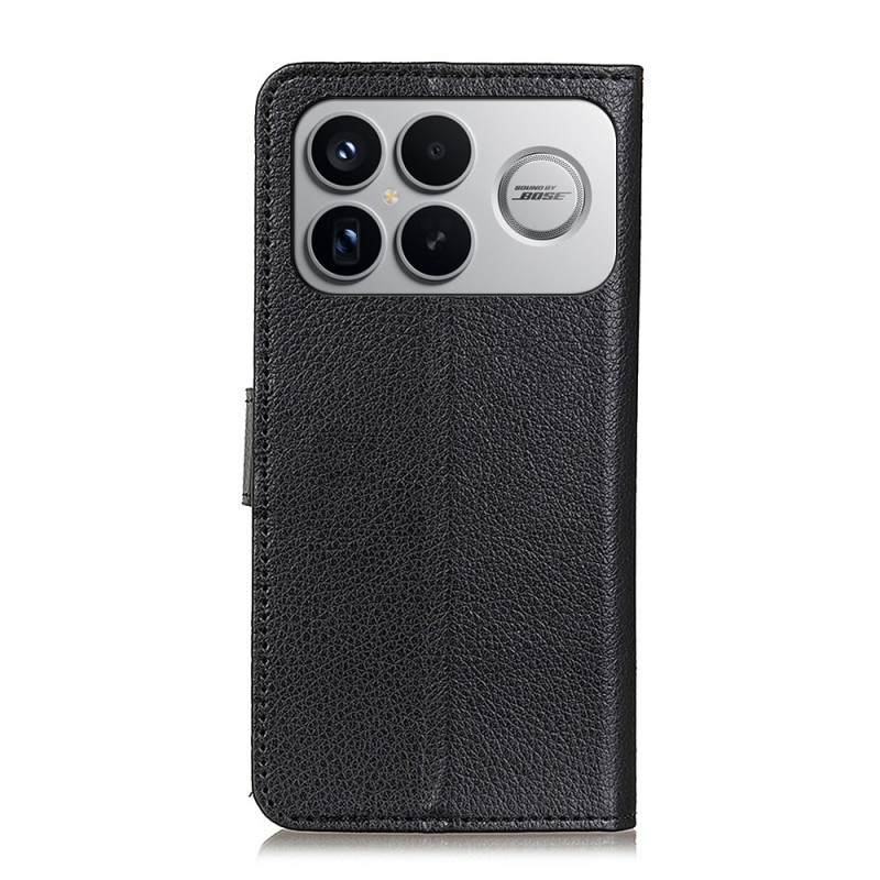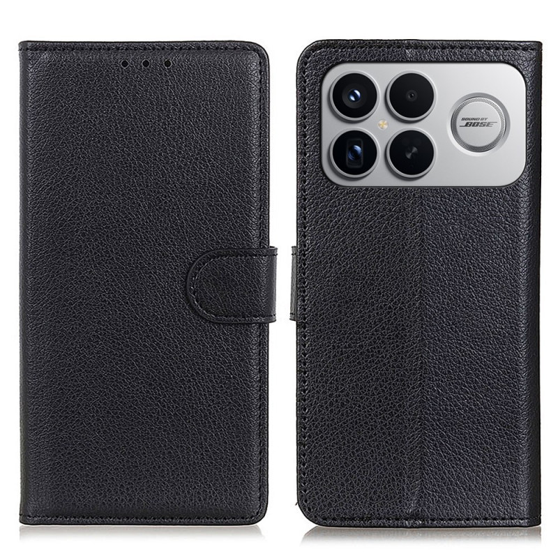 Étui portefeuille élégant en cuir PU avec texture litchi pour une protection optimale. Comprend 3 emplacements pour cartes, un compartiment latéral, une fermeture magnétique sécurisée et une fonction support intégrée pour un usage mains libres.