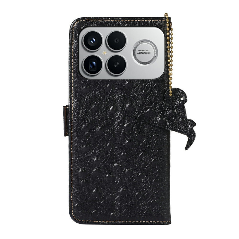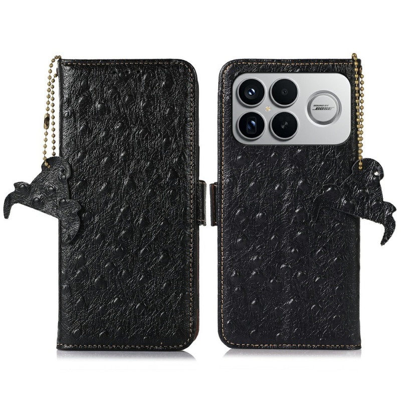 Protégez votre smartphone avec élégance grâce à cet étui portefeuille en cuir véritable à texture autruche. Doté de la technologie de blocage RFID, il offre 2 emplacements pour cartes, 1 poche photo et 1 compartiment pour billets. Son support intégré permet un visionnage mains libres...