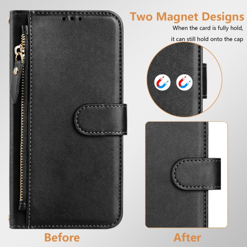 Étui portefeuille multifonctionnel en cuir PU premium avec multiples emplacements pour cartes, poche zippée, support mains libres