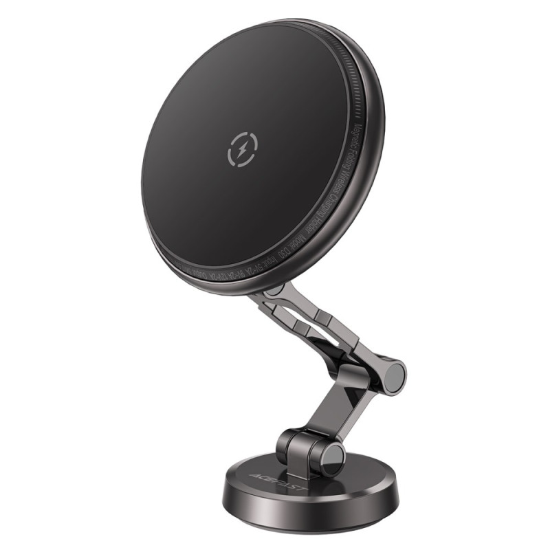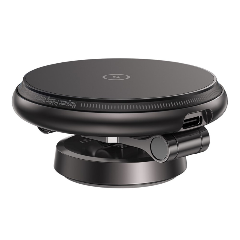 Chargeur sans fil magnétique pour console centrale avec rotation 360°, alignement magnétique précis et lumière LED ambiante. Compatible iPhone 12/13/14/15. Charge rapide jusqu'à 15W pour une expérience de conduite optimale.