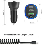 Chargeur voiture intelligent GE05 offrant une charge rapide PD 65W avec câble Type-C rétractable intégré. Équipé d'un écran affichant la tension en temps réel et de deux ports (USB-C 65W + USB-A 18W) pour recharger plusieurs appareils simultanément...