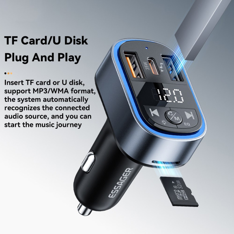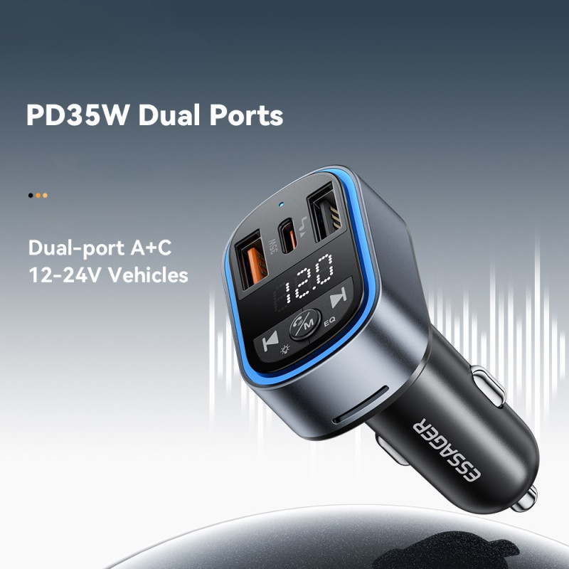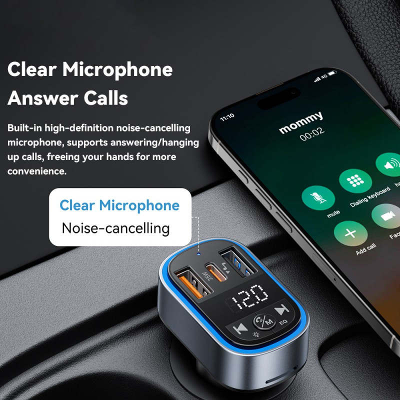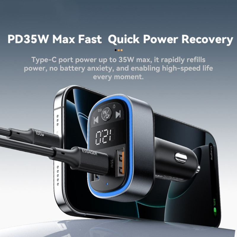 Transformez votre trajet avec ce chargeur voiture intelligent 35W PD à double port. Profitez d'une recharge ultra-rapide simultanée, d'un transmetteur FM intégré et de la technologie Bluetooth 5.3 pour un streaming audio sans fil impeccable.