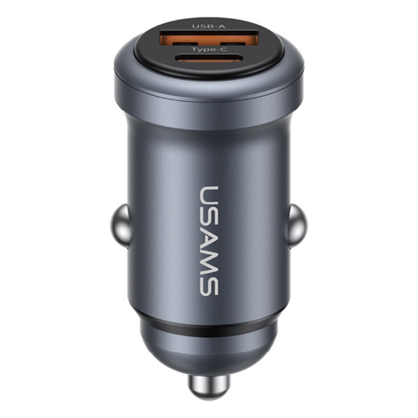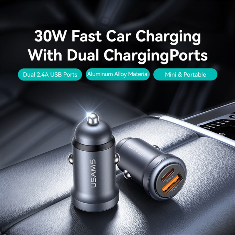 Chargeur voiture ultra-compact 30W avec double port USB-A et USB-C pour une charge rapide et polyvalente. Son design miniature et sa construction robuste garantissent une dissipation thermique optimale. Compatible avec tous vos appareils numériques.
