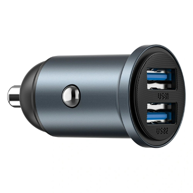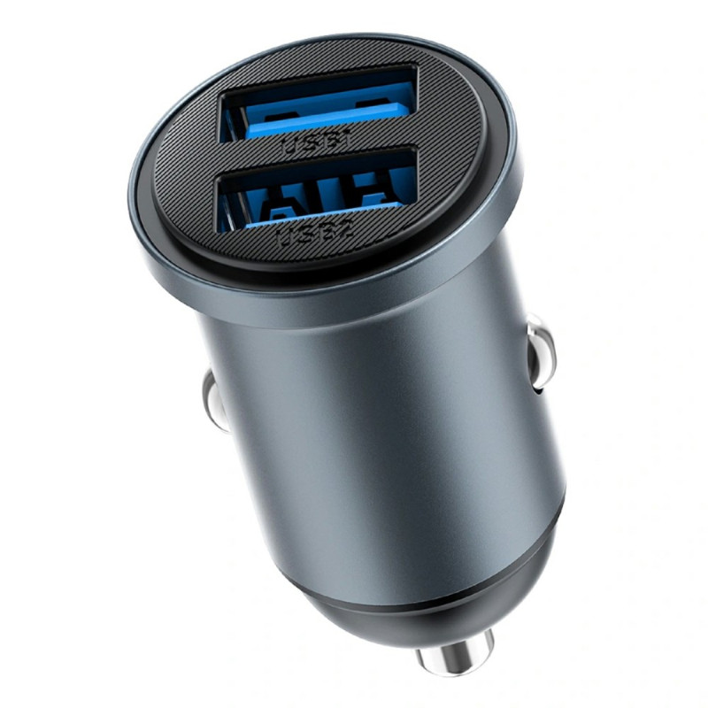Chargeur de voiture compact avec double port USB QC3.0 offrant une charge rapide intelligente jusqu'à 12W. Design élégant et discret qui s'intègre parfaitement à votre tableau de bord. Compatible avec la plupart des appareils et protocoles de charge rapide.