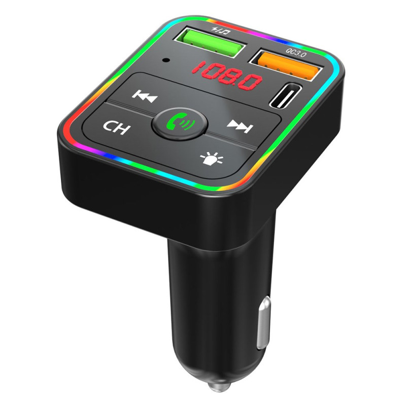 Chargeur Voiture Rapide Dual USB + Transmetteur FM Bluetooth et Lumière