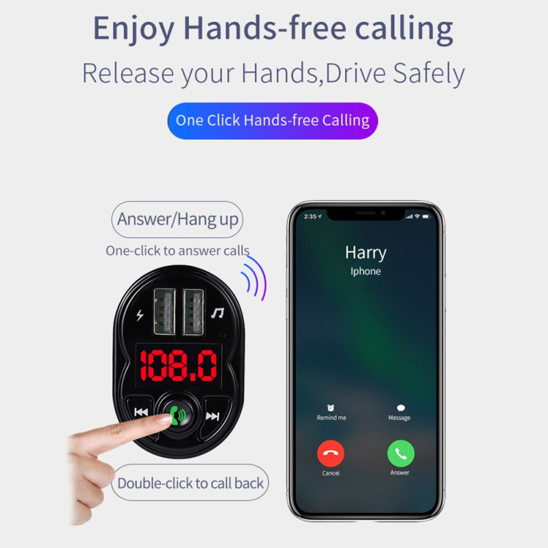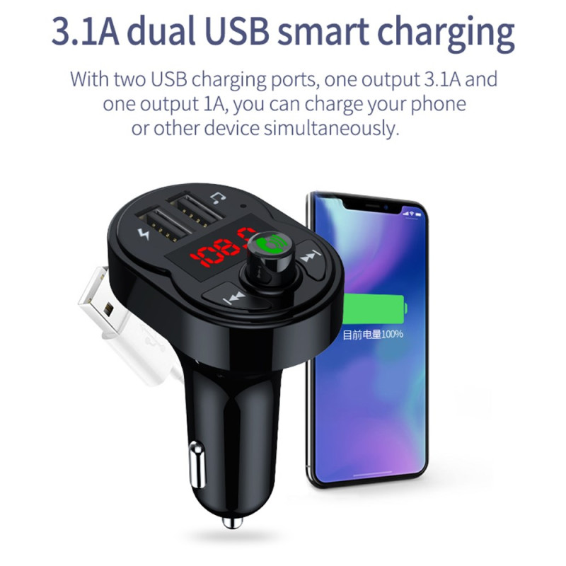 Transmetteur FM Bluetooth Kit Mains Libres avec Chargeur USB 3.1A