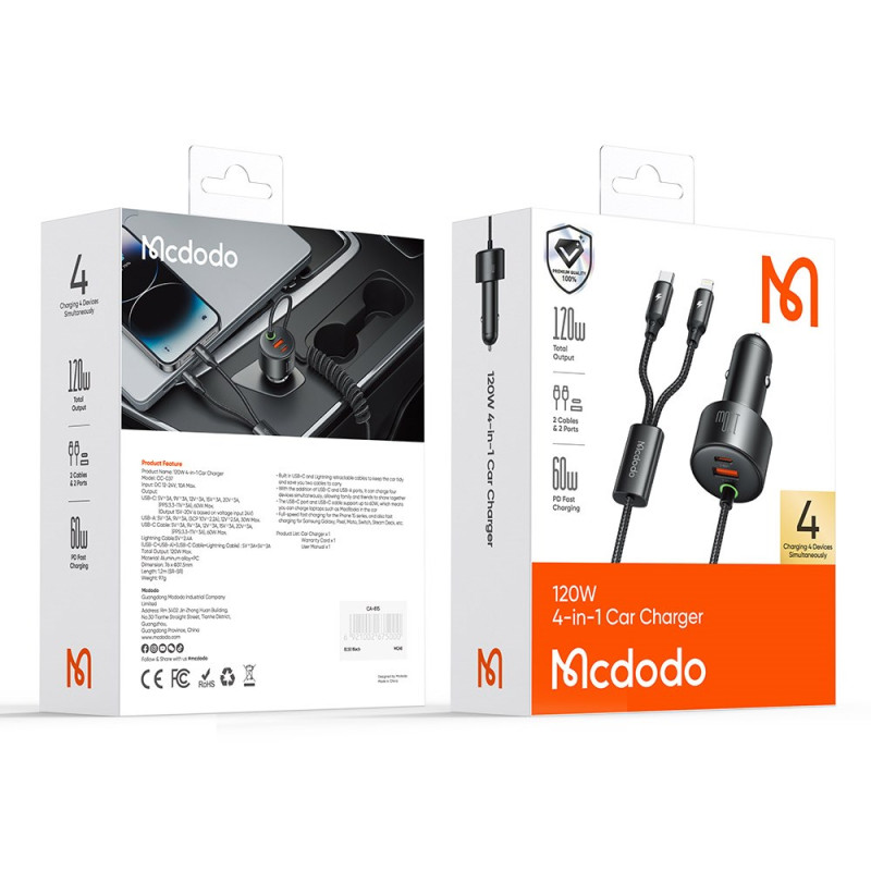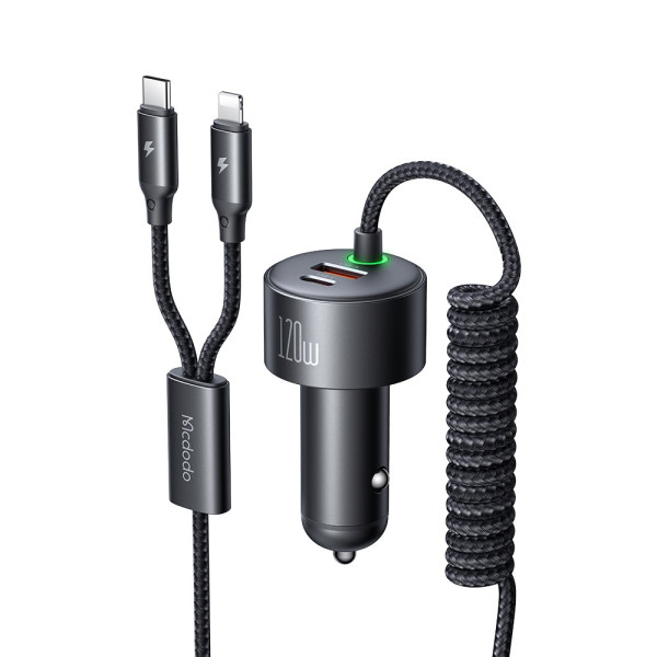 Chargeur Voiture 120W Double Câble USB-C/Lightning MCDODO