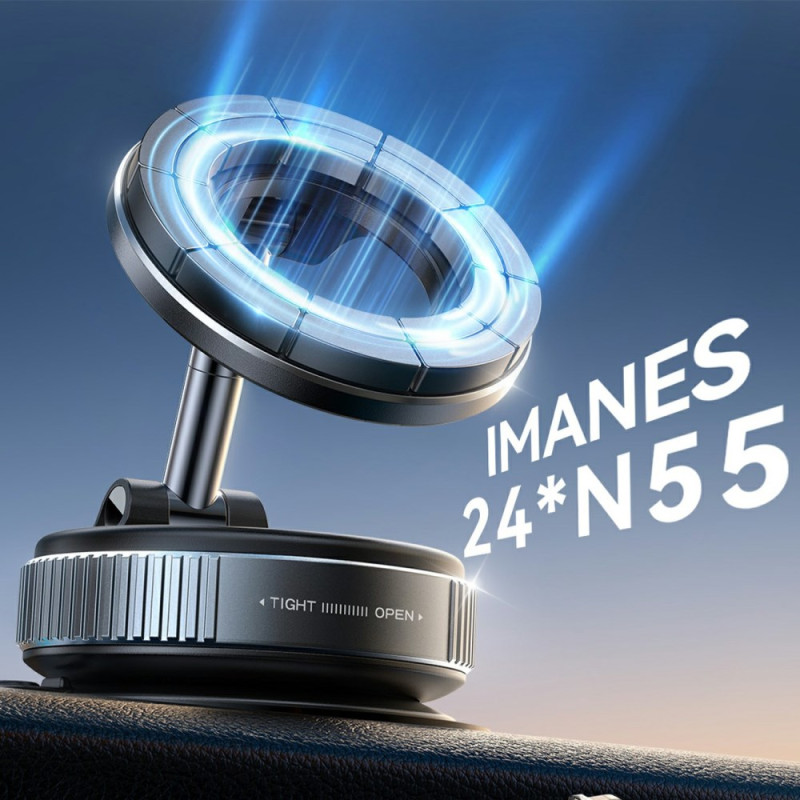 Support magnétique innovant compatible MagSafe avec ventouse ultra-puissante. Design pliable et rotatif pour un ajustement parfait de l'angle de vue. Installation instantanée en 1 seconde. Idéal pour une conduite sûre avec navigation GPS.