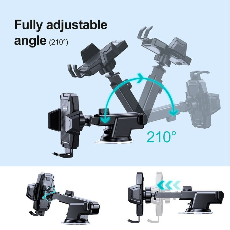 Support voiture ultra-polyvalent avec ventouse à aspiration renforcée et angle réglable à 360°. Compatible smartphones 4 à 7 pouces. Installation universelle sur tableau de bord, pare-brise ou grille d'aération pour une conduite sécurisée.