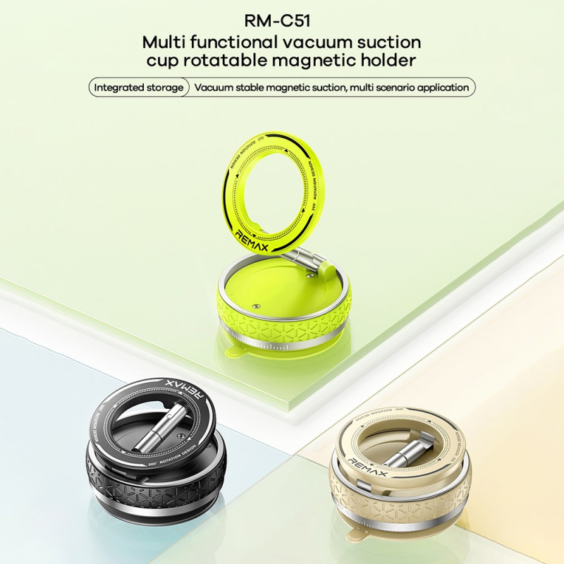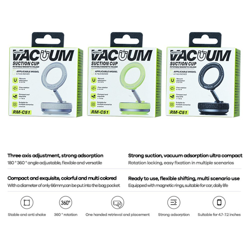 Le support magnétique REMAX RM-C51 offre une solution de fixation polyvalente pour votre téléphone. Avec sa ventouse à vide ultra-adhérente et son système de rotation à 3 axes, profitez d'un angle de vue parfait en voiture, à la maison ou au bureau.