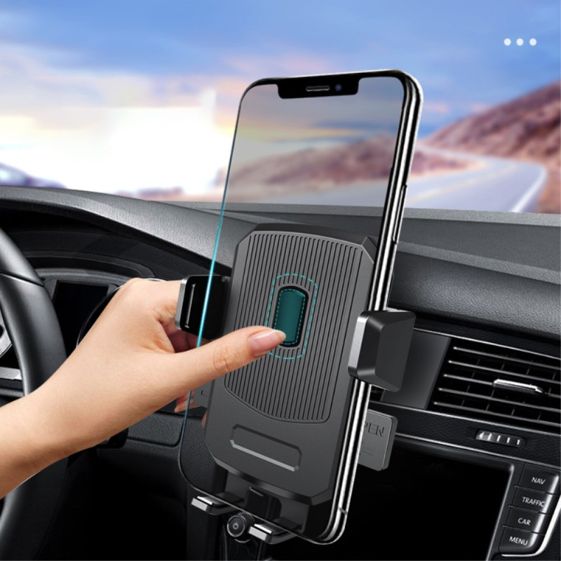 Support universel pour téléphone avec rotation 360° et double fixation : ventouse ultra-adhésive et clip de ventilation. Structure triangulaire stable pour une conduite en toute sécurité. Compatible avec tous les smartphones de 65-100mm.
