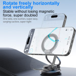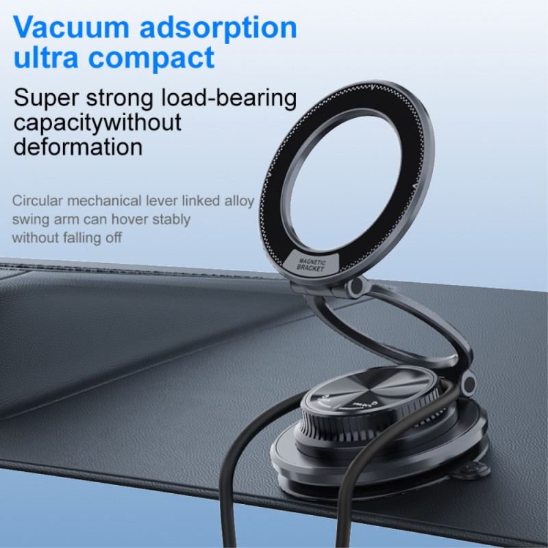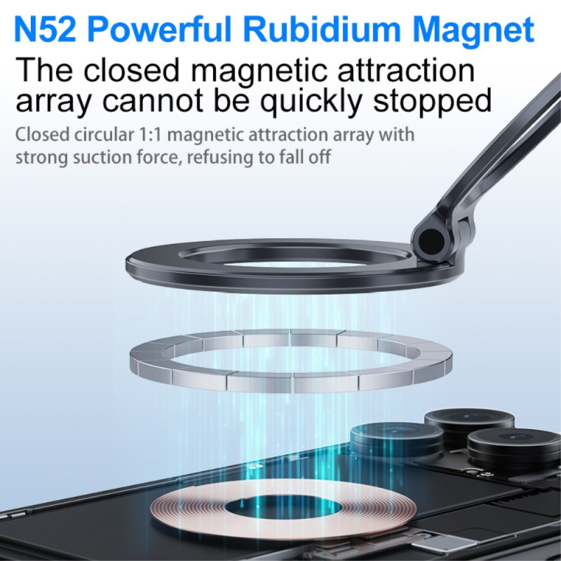 Support magnétique pliable avec ventouse puissante pour une fixation universelle. Design compact à trois axes ajustables offrant une rotation 360° pour un angle de vue optimal. Maintien magnétique sécurisé permettant un retrait facile de votre appareil.