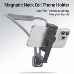Outil de création modulaire par excellence, ce support magnétique s'adapte à la fois à l'utilisation en mouvement et à la prise de vue statique. Son design POV tour de cou permet l'enregistrement immersif en mains libres. Pour une stabilité accrue, un mini trépied est inclus, le rendant idéal pour les selfies de groupe et les plans fixes. Le collier flexible, recouvert de silicone, assure un ajustement confortable sans causer de douleur. Le système d'attache magnétique permet un montage et un démontage rapides du téléphone. Il est compatible avec tous les smartphones (6-11 cm de largeur).