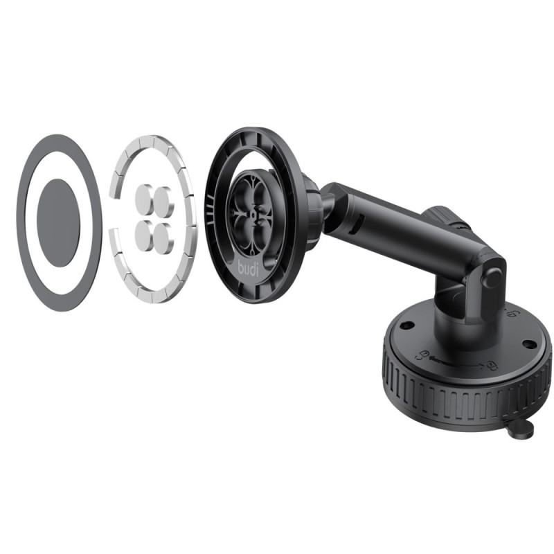 La maîtrise totale de l'angle de vue et la sécurité du dispositif sont des facteurs essentiels pour une conduite sans distraction. Ce support BUDI utilise un puissant aimant pour maintenir fermement le téléphone, même lors de mouvements brusques. Le dispositif intègre une double rotation (360° sur le connecteur et 240° sur le bras), permettant un ajustement complet pour répondre aux besoins de navigation ou d'appel vidéo. La base à ventouse assure une fixation polyvalente et fiable sur diverses surfaces. L'installation et le retrait du téléphone sont rapides et facilités par l'adsorption magnétique.