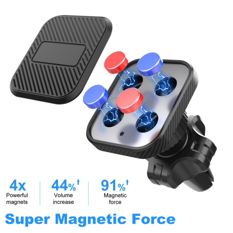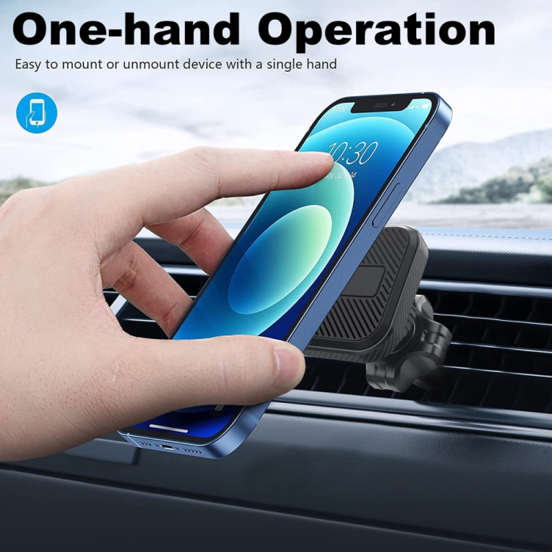 Le support magnétique rotatif 360° pour grille d’aération de voiture combine praticité, sécurité et design compact. Grâce à ses 4 aimants intégrés, il maintient solidement votre smartphone, même sur routes irrégulières. Son système de rotation à 360° permet un ajustement fluide pour un angle de vision optimal, en mode portrait ou paysage. Facile à installer sur la grille d’aération, il s’utilise d’une seule main pour une manipulation rapide et sans distraction. Compatible avec tous les smartphones de 4 à 7 pouces, il offre une solution élégante et stable pour la navigation ou les appels mains libres