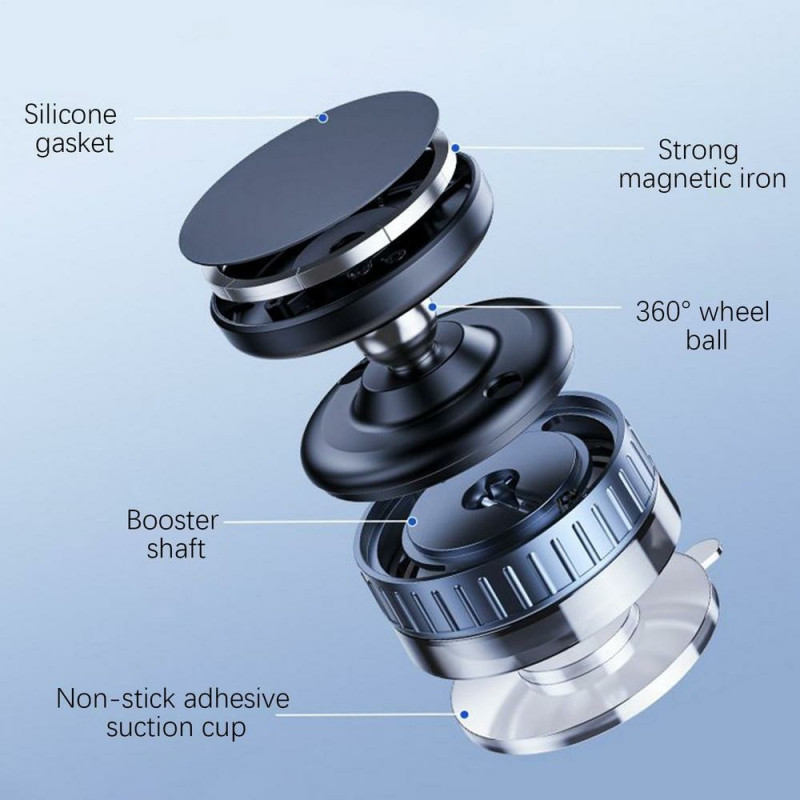 Le support téléphone voiture à ventouse magnétique offre une fixation sûre et stable grâce à son système de double aspiration sous vide, idéal pour une installation sur pare-brise, tableau de bord ou toute surface lisse. Sa tête rotative à 360° permet d’ajuster facilement l’angle de vision pour une navigation claire et des appels mains libres en toute sécurité. Léger et compact, il se transporte aisément d’un véhicule à l’autre. Conçu en ABS et TPU résistants, il accueille tous les smartphones magnétiques dès 4,7 pouces, ou les modèles non magnétiques associés à une plaque métallique.