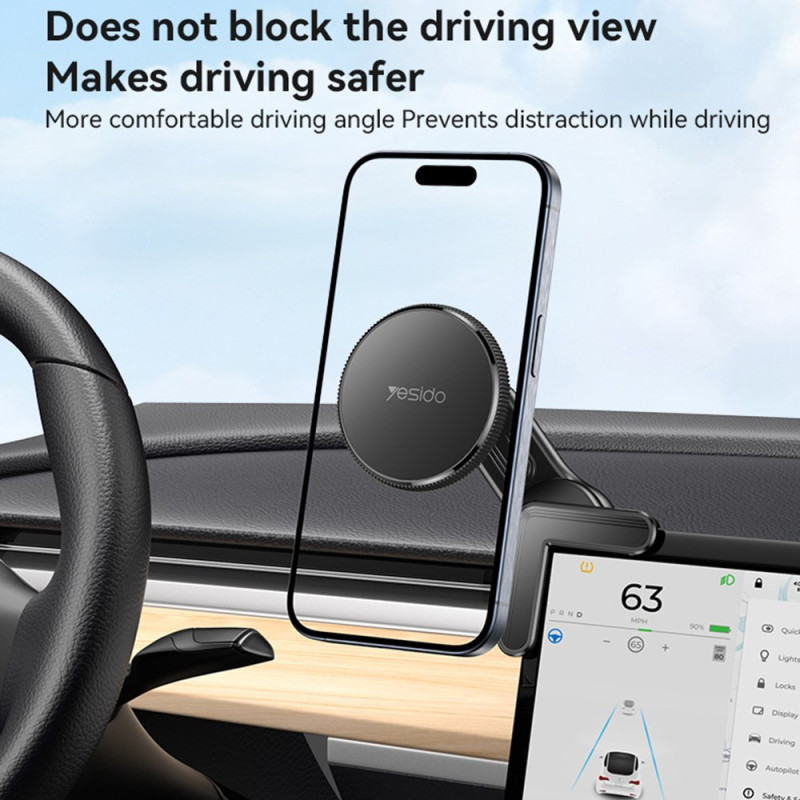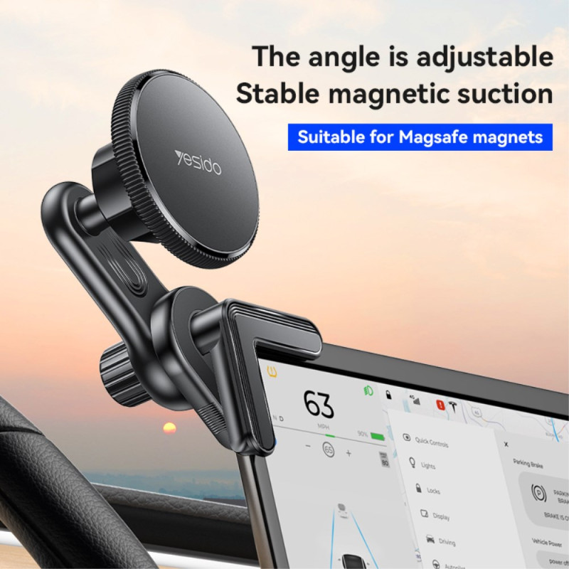 Ce support magnétique flottant YESIDO est spécialement conçu pour les écrans flottants jusqu’à 2,7 cm d’épaisseur. Grâce à sa rotule à 360° et à son bras réglable, il permet d’ajuster facilement l’angle de vision pour une utilisation optimale, que ce soit pour la navigation, les appels ou le divertissement. Doté d’un système de double renfort avec adhésif lavable et molette de serrage, il garantit une fixation stable sans glissement. Ses six aimants N42 assurent une adhérence puissante et sécurisée, même sur route cahoteuse. Compact, solide et pratique, c’est l’accessoire indispensable pour les utilisateurs d’iPhone 12 à 16.