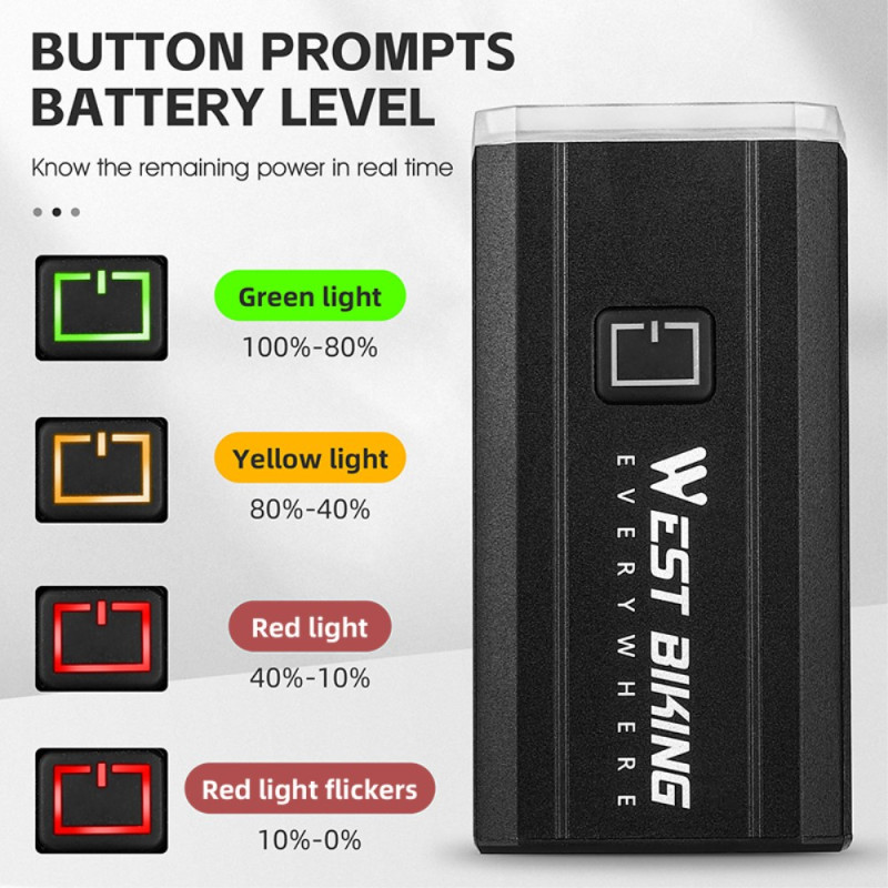 La fiabilité de l'éclairage et la résistance aux conditions extrêmes sont au cœur de la conception de cette lampe WEST BIKING. Son boîtier en alliage d'aluminium assure une dissipation thermique efficace et une durabilité accrue, le rendant prêt à affronter toutes les intempéries grâce à son indice d'étanchéité IPX6. Avec 1000 lumens, elle garantit une visibilité claire sur longue portée, essentielle à la sécurité nocturne. Sa batterie de 4400mAh offre une autonomie prolongée, complétée par cinq modes d'éclairage (incluant SOS) pour s'adapter à toutes les situations. Le système de fixation rapide permet une installation simple et pratique.