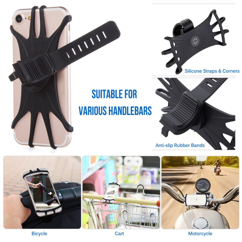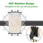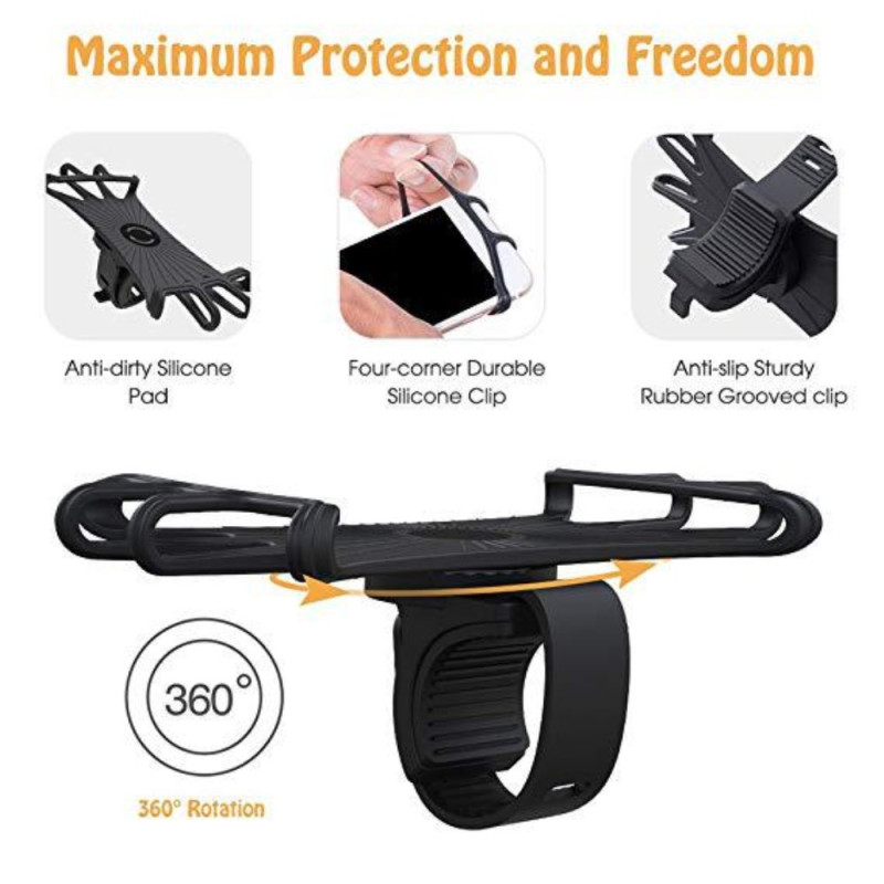 La stabilité de la fixation sur les terrains accidentés est garantie par l'ingénierie souple et antidérapante de ce support. Fabriqué en silicone flexible et robuste, il offre une protection antichoc efficace contre les vibrations de la route. La sangle extensible assure une compatibilité universelle avec les smartphones de 4 à 6 pouces. Le clip en caoutchouc rainuré maintient fermement l'ensemble sur le guidon. Grâce à la rotation à 360 degrés, l'utilisateur peut ajuster l'angle de vue pour une navigation optimale en mode portrait ou paysage.