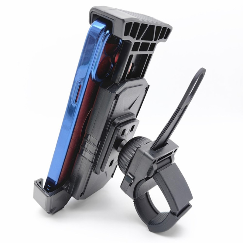 Pour garantir une stabilité et une accessibilité optimales de votre smartphone, ce support a été conçu avec une structure de fixation robuste. Le mécanisme de serrage sécurise fermement l'appareil (jusqu'à 9.8cm de largeur) sur le guidon, évitant toute chute. Les coussinets antidérapants intégrés protègent le téléphone des rayures et absorbent les vibrations. Grâce à sa rotation à 360 degrés, l'utilisateur peut ajuster l'angle de vue idéal pour la navigation GPS. De plus, un trou de charge réservé permet d'alimenter le dispositif en continu lors des longs trajets.