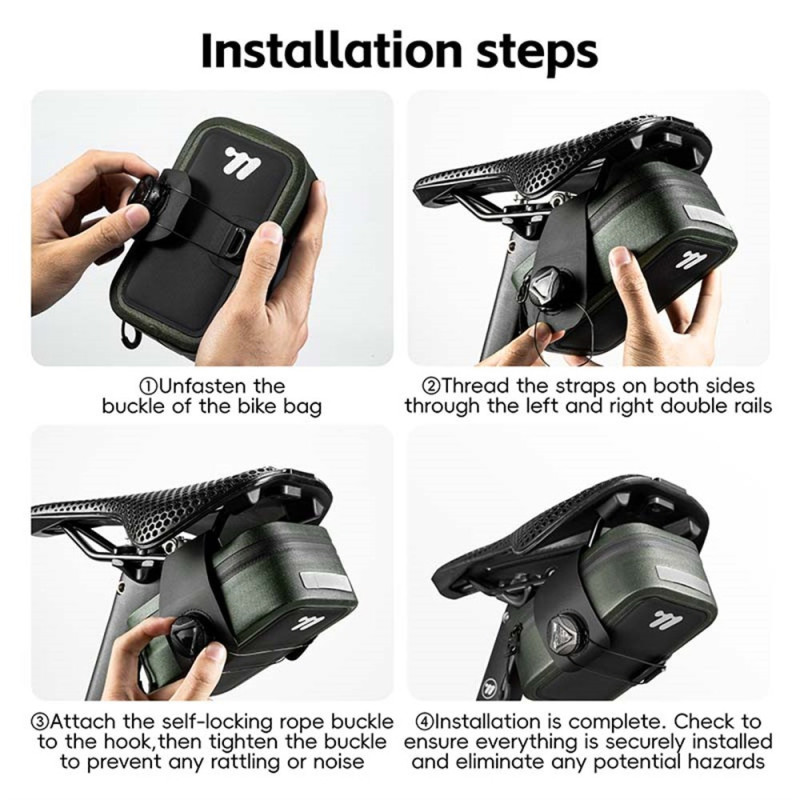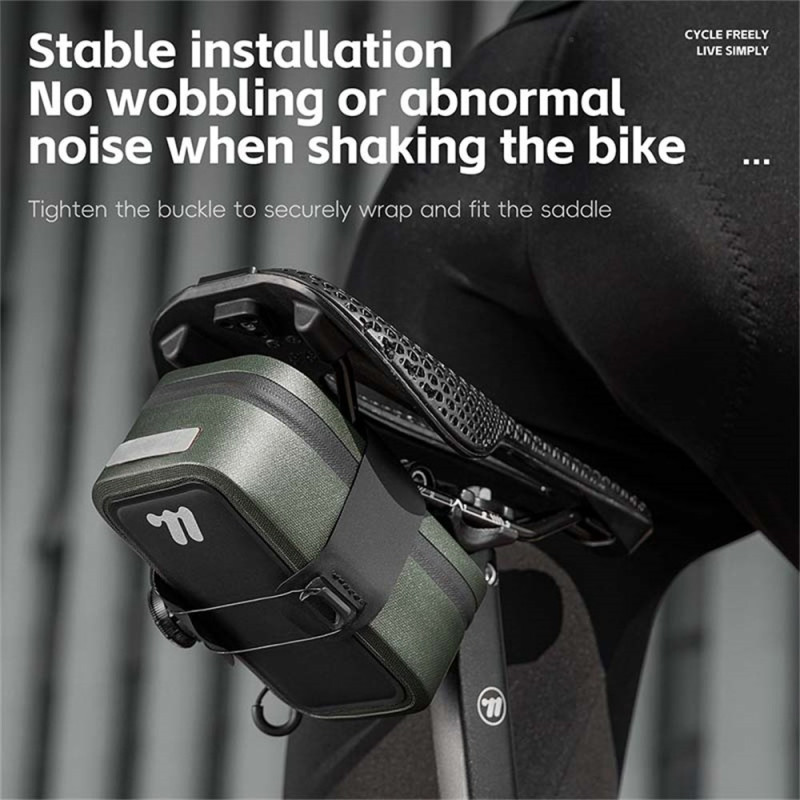 Assurer la rétention sécurisée des outils, même sur terrains extrêmes, est la mission principale de cette sacoche de selle. Fabriquée en polyester 600D et TPU, elle utilise une technologie de soudure sans couture pour garantir une étanchéité totale contre l'humidité. Le mécanisme d'auto-blocage innovant (self-locking) assure une fixation ferme au rail de selle, empêchant tout détachement accidentel. L'installation et le retrait sont rapides grâce à son design à boucle rotative. Malgré sa taille compacte (0.5L), elle offre un espace optimisé pour les kits de réparation et les essentiels, maintenant un profil aérodynamique.
