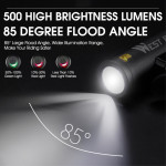 L'amélioration significative de la sécurité nocturne est garantie par la combinaison d'une puissance de 500 lumens et d'un éclairage grand angle. Ce feu avant utilise une LED T6 délivrant un faisceau de 200 mètres avec une couverture de 85 degrés. Le boîtier en alliage d'aluminium mat est conçu pour une résistance et une durabilité maximales. Sa batterie intégrée de 2000mAh offre une longue autonomie, minimisant la fréquence de recharge. Le dispositif est certifié IPX5, assurant sa résistance aux intempéries. Cinq modes d'éclairage sont disponibles, permettant l'adaptation à tous les environnements de cyclisme.