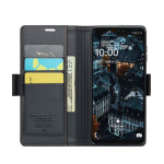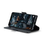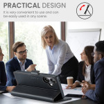 Cette housse en cuir PU et TPU offre une protection complète avec technologie de blocage RFID, rangements pour cartes et billets, support de visualisation mains libres et fermeture magnétique double.