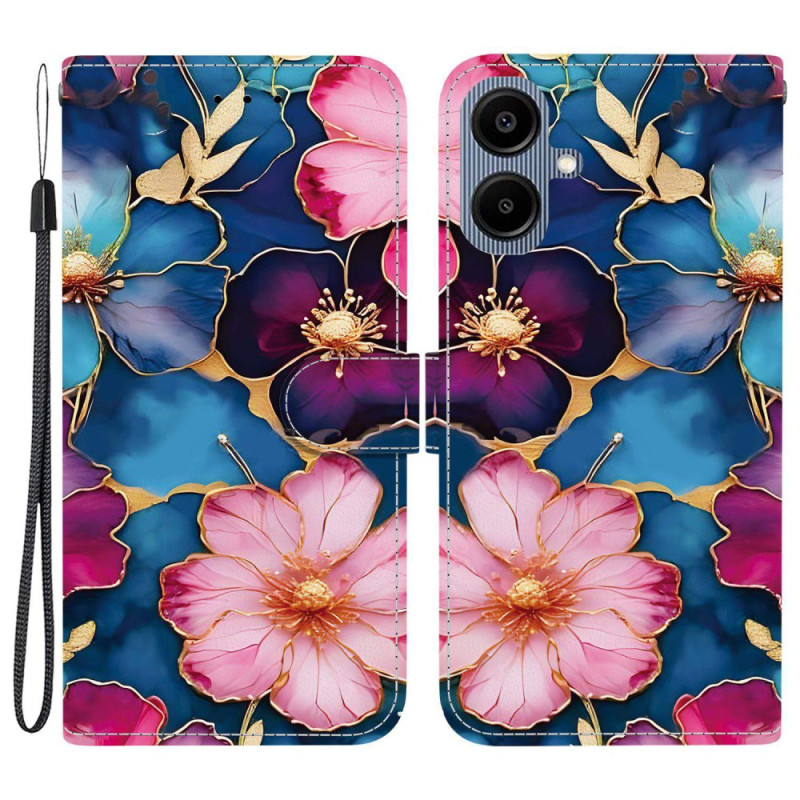 Protégez votre Samsung Galaxy A07 5G / 4G / A06 avec élégance grâce à cet étui portefeuille au motif floral bleu doré raffiné. Doté d'un support pliable, de fentes pour cartes et d'une dragonne pratique, il allie style et fonctionnalité au quotidien.