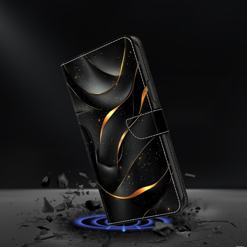Découvrez cet étui élégant avec motif ruban doré pour votre Samsung Galaxy A07 5G / 4G. Doté d'un support pliable pratique, de 2 emplacements pour cartes et d'un compartiment pour billets, il allie style et fonctionnalité. Sa fermeture magnétique sécurisée protège votre téléphone au quotidien.