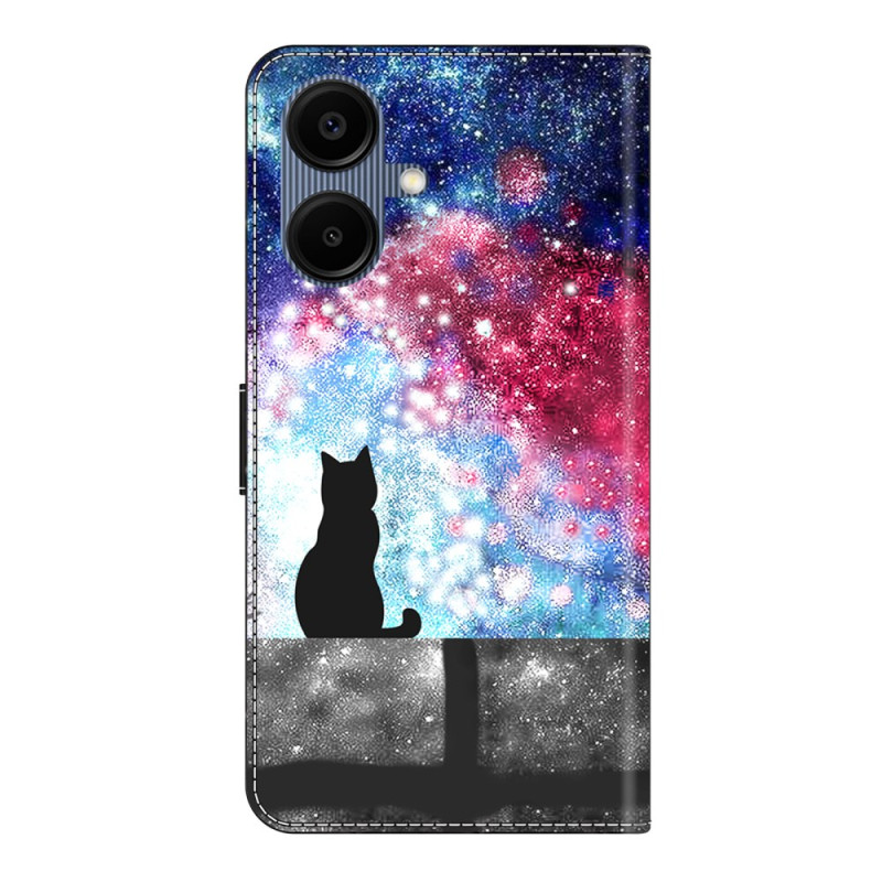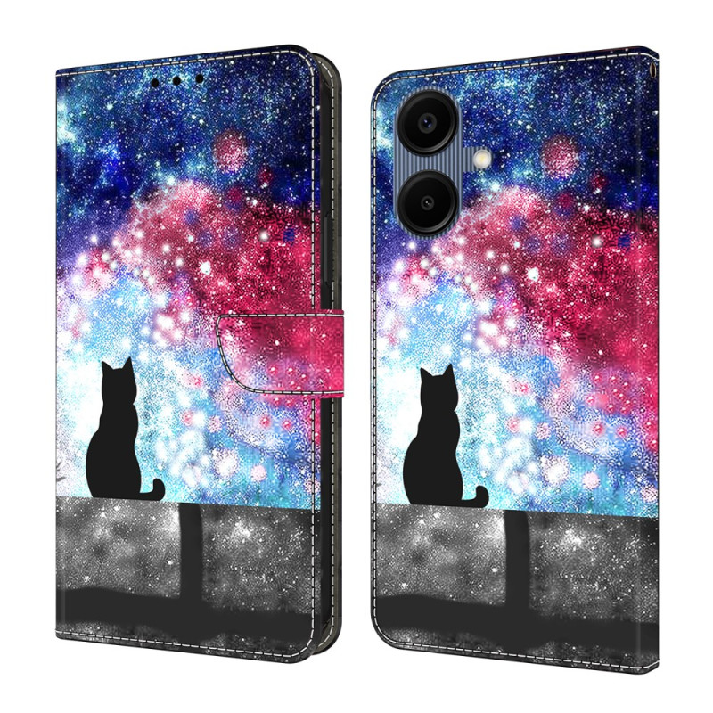 Protégez votre Samsung Galaxy A07 5G / 4G avec style grâce à cet étui portefeuille élégant au motif chat étoilé. Doté d'un support pliable pratique, de 2 emplacements pour cartes et d'une fermeture magnétique sécurisée, il allie fonctionnalité et style.