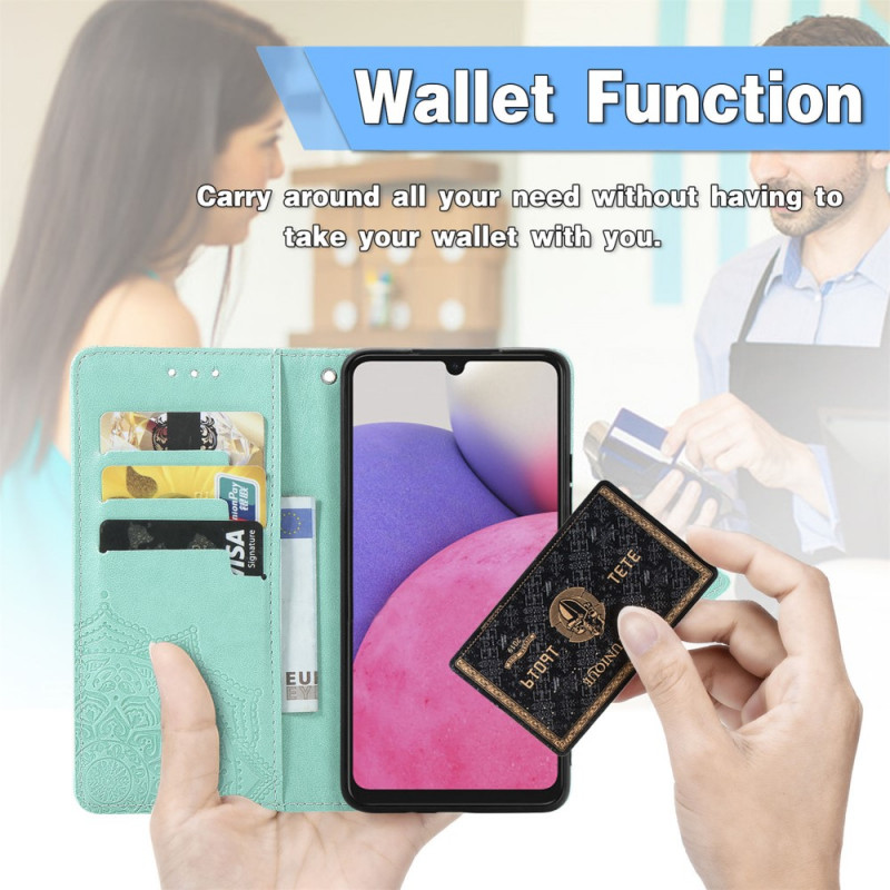 Une superbe housse pour le Samsung Galaxy A13, décorée d'un mandala moyen âge, qui le sécurise entièrement tout en servant de portefeuille.