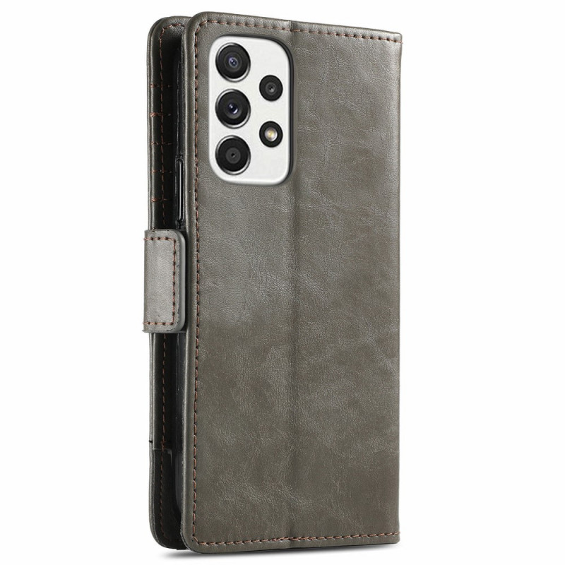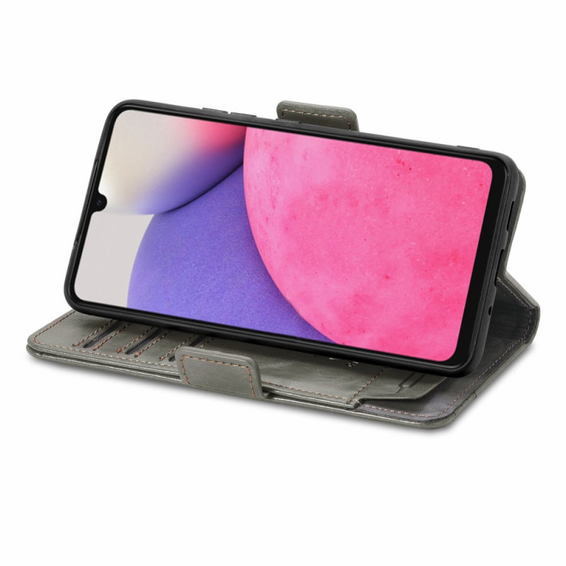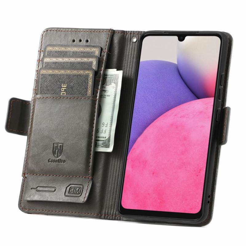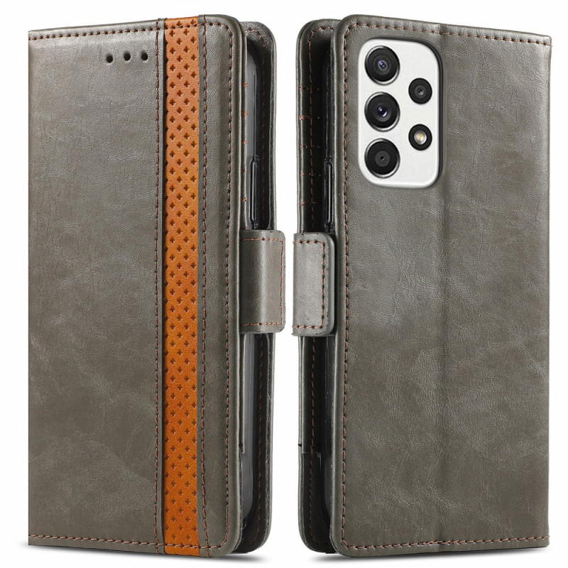 Une housse, en simili cuir bicolore, pour le Samsung Galaxy A13 4G, qui fournie protection, emplacements pour cartes et double fermoir.