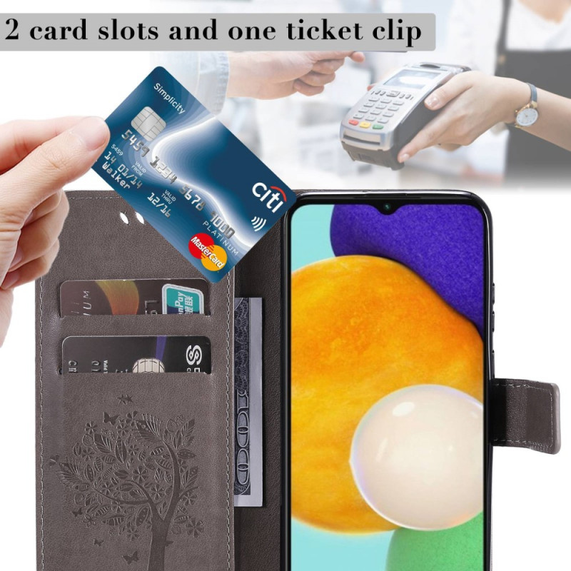 Housse Samsung Galaxy A14 5G / A14 Arbre et Chat à Lanière