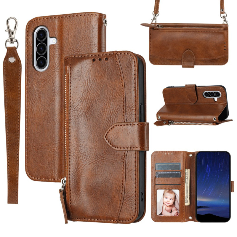 Découvrez notre étui polyvalent pour Samsung Galaxy A26 5G. Fabriqué en cuir PU de qualité, il offre une protection complète avec des fonctionnalités pratiques comme une poche zippée, des fentes pour cartes, un support intégré et une bandoulière amovible.