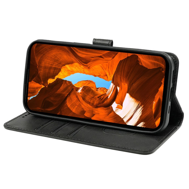 Protégez votre Samsung Galaxy A37 5G avec élégance grâce à cet étui à rabat en cuir texture veau. Doté d'une fermeture magnétique sécurisée, de 3 emplacements pour cartes et d'un support intégré pour un visionnage mains libres optimal.
