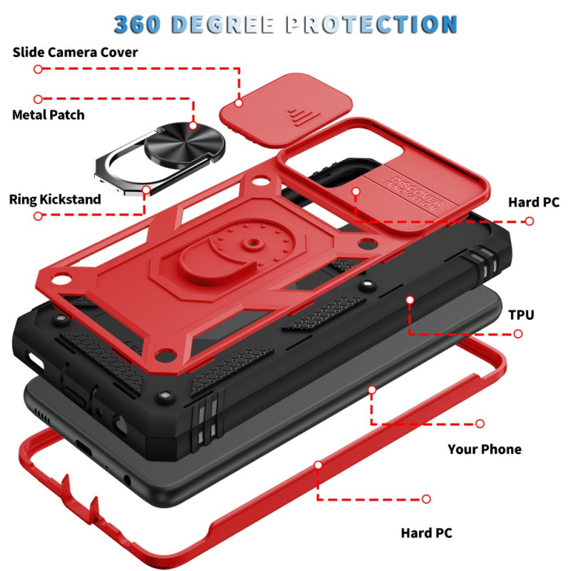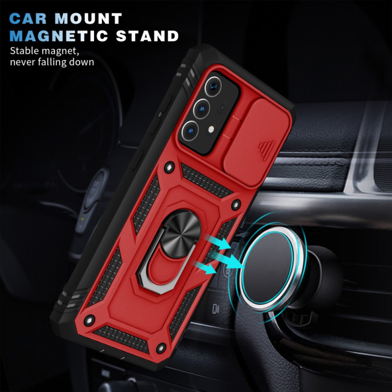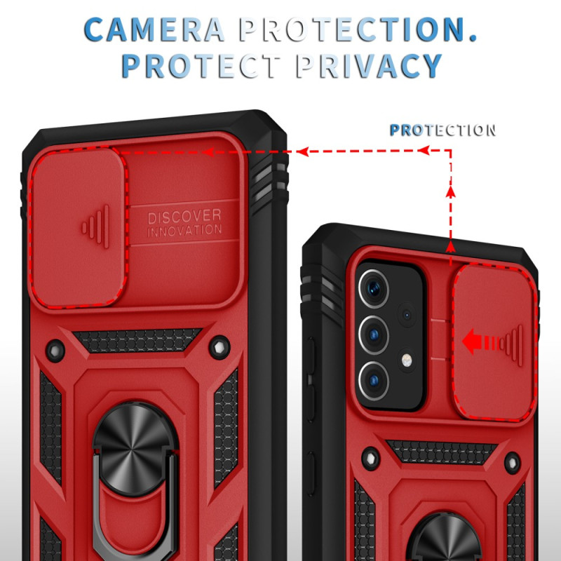 Offrez vous une coque ultra résistante et multi-fonctionnelle pour votre Samsung Galaxy A52s / A52 4G / 5G munie d'un anneau et d'un cache-lentille.