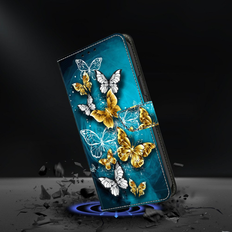 Protégez votre Samsung Galaxy A57 5G avec élégance grâce à cet étui portefeuille à rabat au motif papillon doré. Doté d'un support pliable, de 2 fentes pour cartes et d'une fermeture magnétique sécurisée, il allie style et fonctionnalité.
