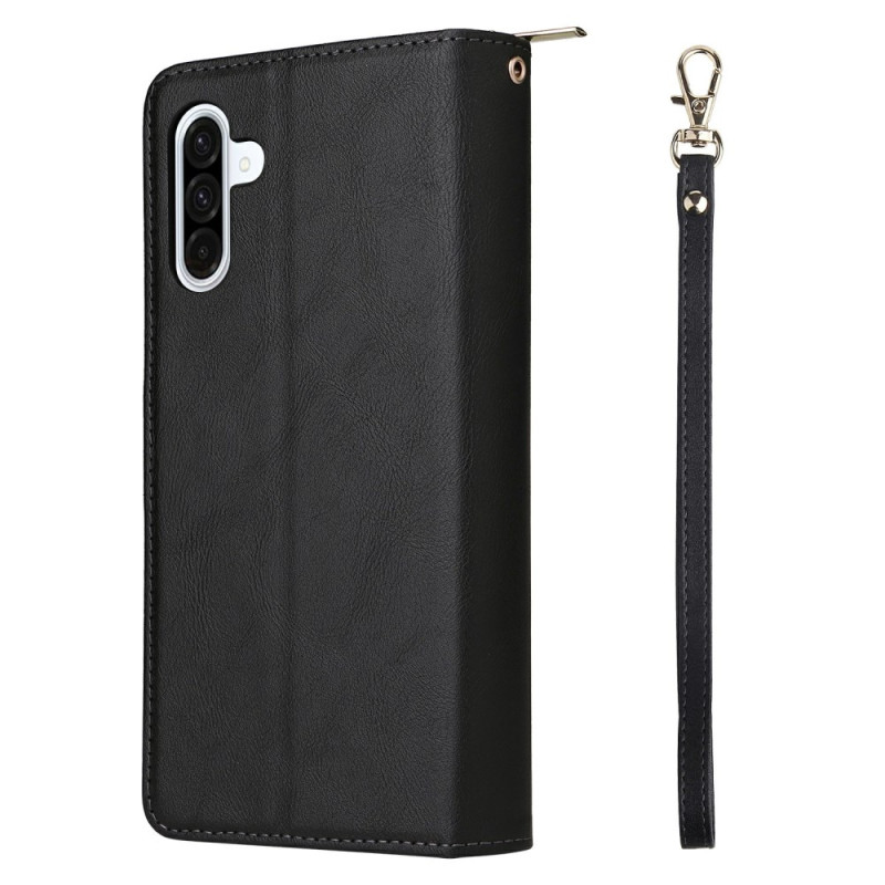 Étui multifonction en cuir PU pour Samsung Galaxy A57 5G. Dispose de 9 emplacements pour cartes, d'une poche zippée pour l'argent liquide et d'une dragonne pratique. Fermeture magnétique sécurisée et support intégré pour un usage mains libres.