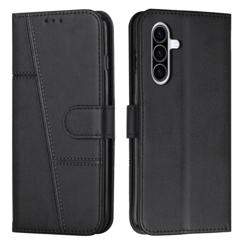 Étui portefeuille élégant pour Samsung Galaxy A57 5G combinant protection et praticité. Doté de 2 emplacements pour cartes, 1 compartiment photo et 1 porte-billets. Support pliable mains-libres intégré et fermeture magnétique sécurisée.