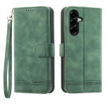 Étui portefeuille élégant en cuir PU avec motif lignes imprimées pour Samsung Galaxy A57 5G. Design pratique avec emplacements pour cartes, compartiment billets, fonction support et fermeture magnétique sécurisée. Inclut une dragonne pour un transport facile.