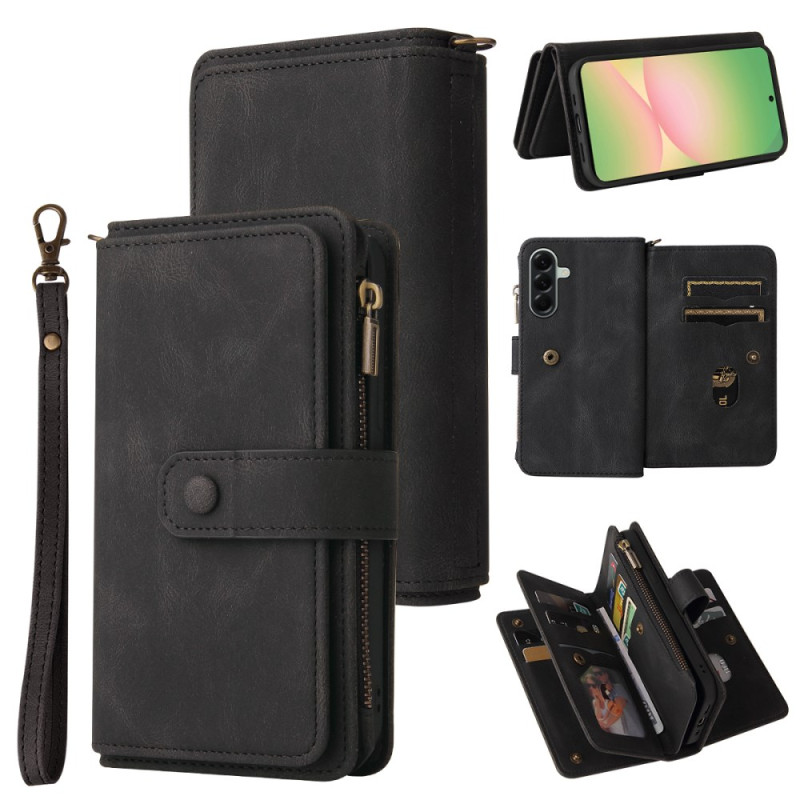 Protégez votre Samsung Galaxy A57 5G avec style grâce à cet étui portefeuille multifonction. Doté de 15 emplacements pour cartes, d'une poche zippée sécurisée et d'une dragonne détachable, il combine élégance et praticité au quotidien.