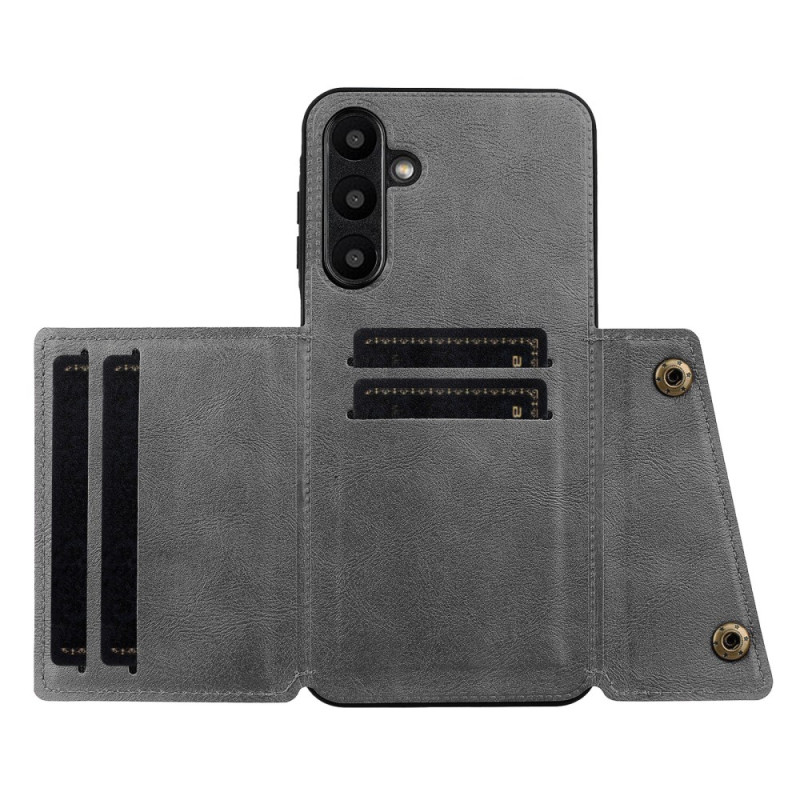 Étui multifonction alliant élégance et praticité pour votre Samsung Galaxy A57 5G. Doté de porte-cartes intégrés, d'une béquille ajustable et d'une fermeture sécurisée à double bouton-pression. Compatible avec les supports magnétiques de voiture.