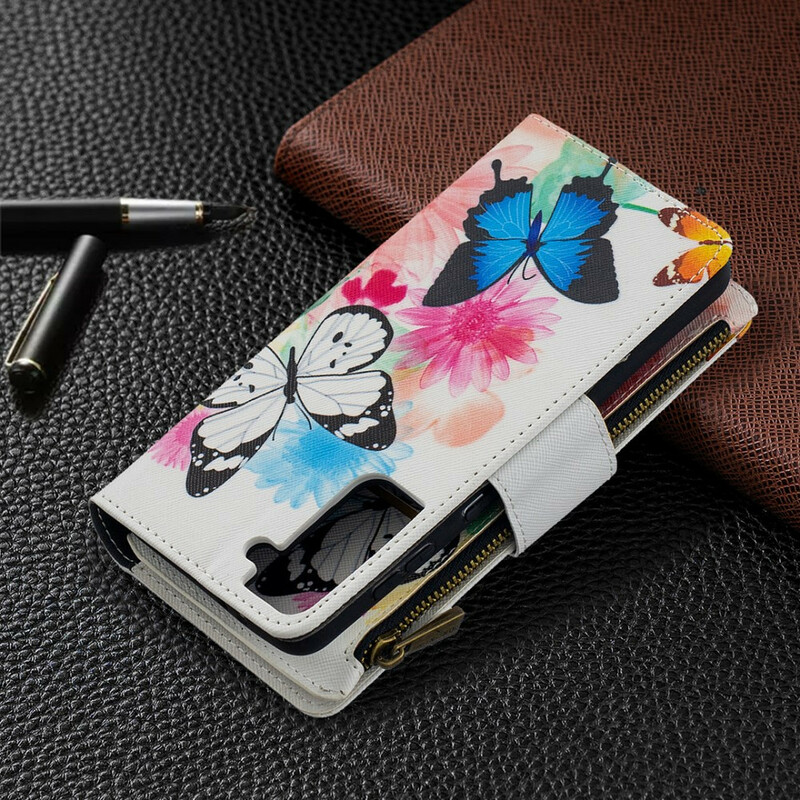La housse Poche Zippée Papillons sécurise et propose beaucoup d'options au Samsung Galaxy S21 Plus 5G.