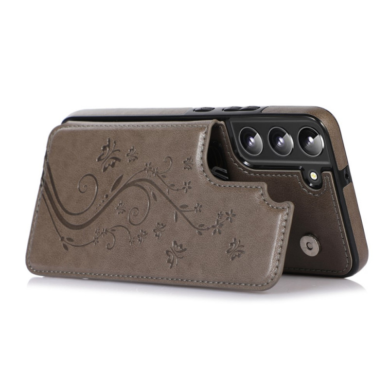 Votre Samsung Galaxy S22 5G est protégé de façon multi fonctionnelle avec cette coque en simili cuir Impression Fleurs munie d'un porte-cartes qui sert de support.