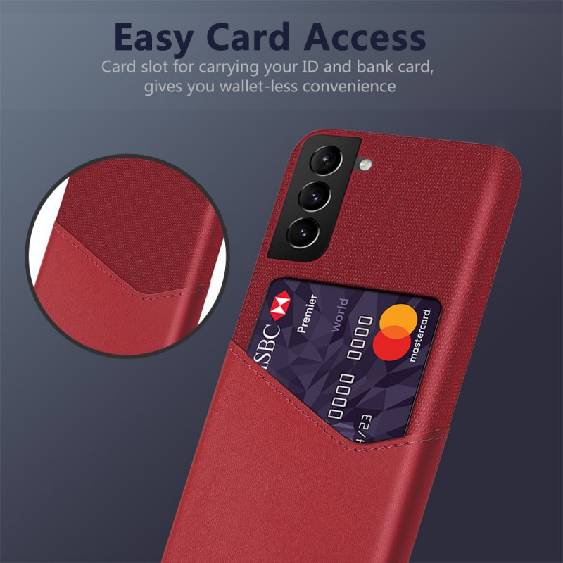 KSQ a conçu cette magnifique coque en simili cuir et tissu, avec un porte-carte intégré, spécialement pour le Samsung Galaxy S22 5G.