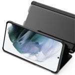 La view cover Miroir et Effet Cuir protège efficacement votre Samsung Galaxy S22 5G avec une élégance exceptionnelle.