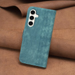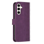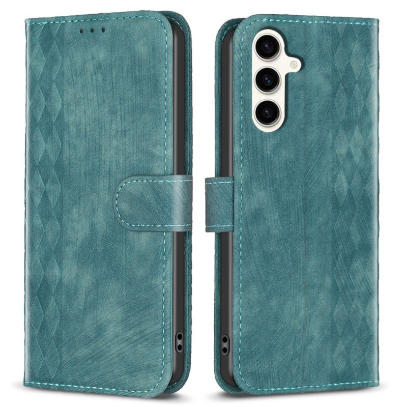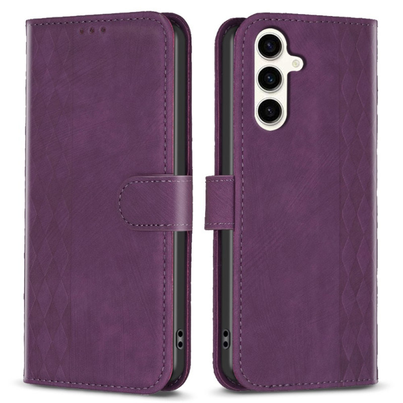 La housse en style cuir avec une frise géométrique procure une protection polyvalente pour le Samsung Galaxy S23 FE.